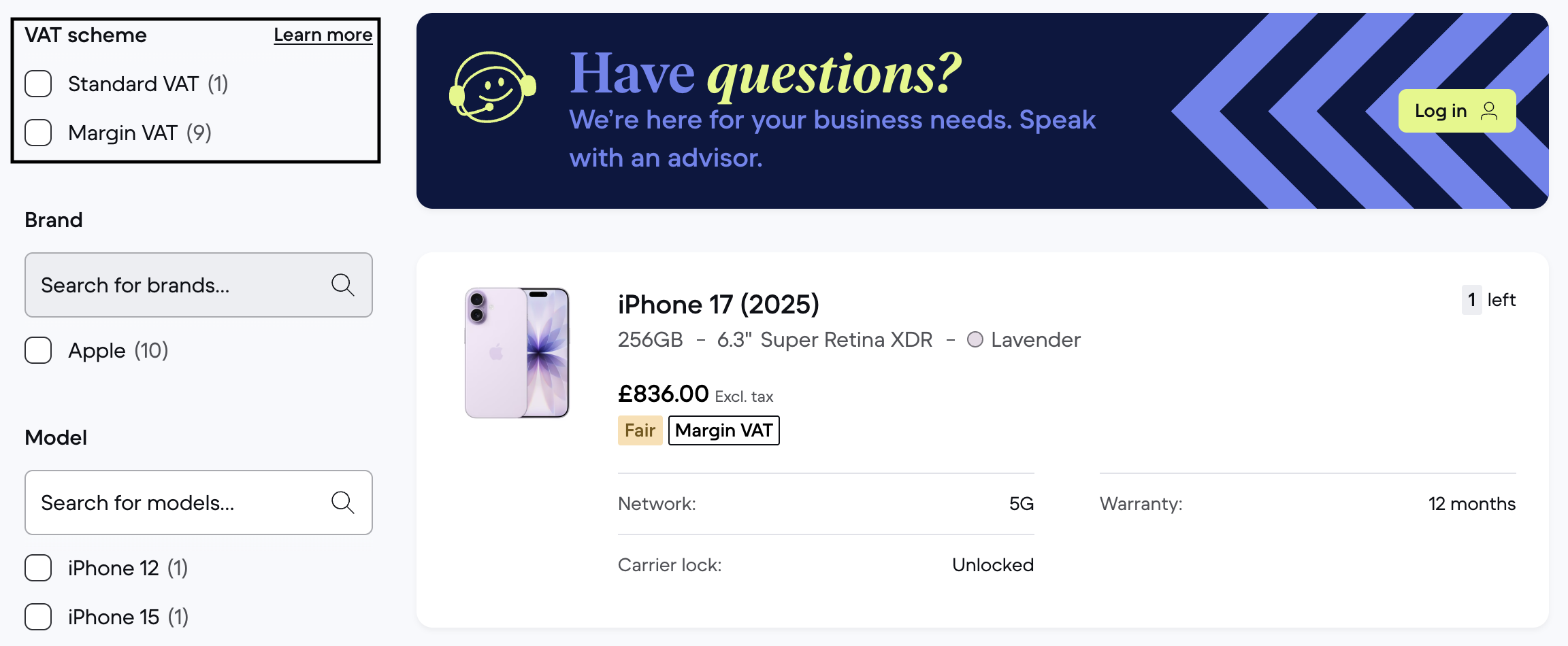 Fewer than 10% of products sold on Back Market Pro are subject to the VAT Margin Scheme.