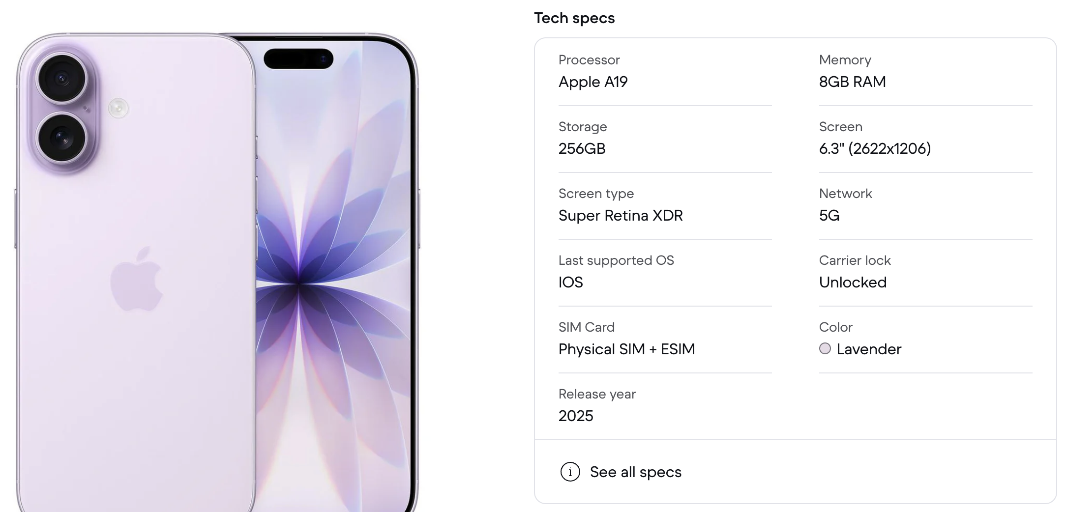 - Click on "See All Specs" to view the complete technical specifications sheet.