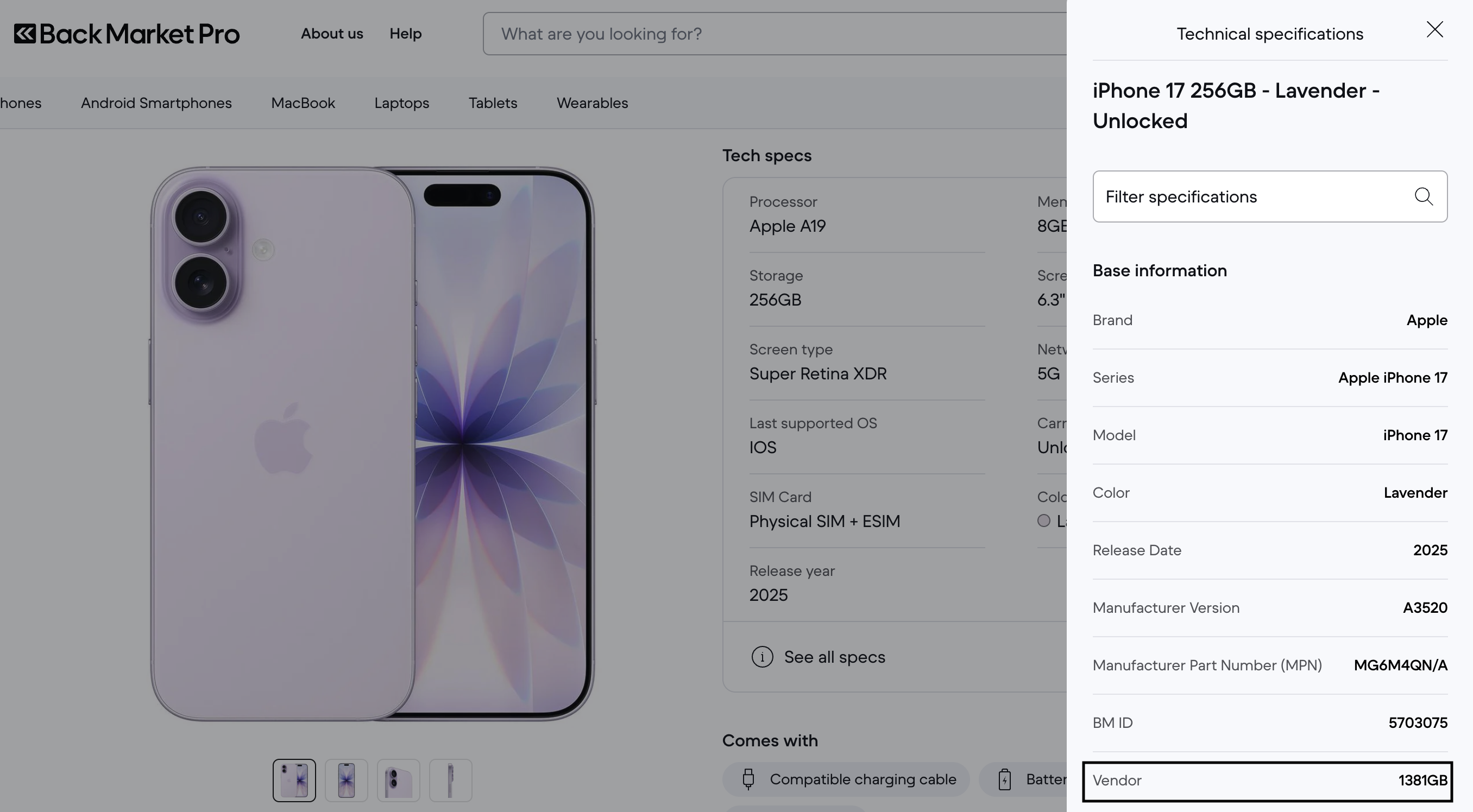 On Back Market Pro, although you cannot directly filter or search for products by seller, you can view information about the seller offering the product you are interested in.
